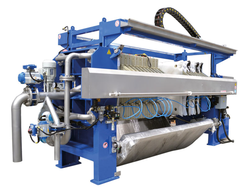 مایع فیلترشده که بسیار شفاف خواهد بود ، پس از خروج از فیلترپرس به سمت حوضچه یا مخازن تعبیه شده هدایت می شود. سرانجام با بازشدن دستگاه،کیک ها به پایین فروریخته و دستگاه تخلیه می گردد.همچنین جهت بهبود در امر فیلتراسیون می توان کیک را شست و جهت جداسازی بهتر و راحت تر کیک از صفحات، می توان آن را توسط هوا خشک نمود.