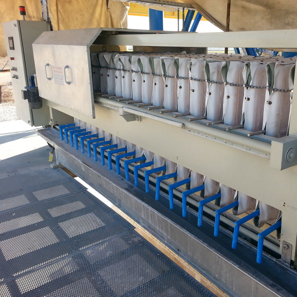 صفحات پلی پروپیلن روی دو عدد میل یا تسمه موازی که بین یک صفحه متحرک و صفحه ثابت کشیده شده اند ، قرار دارند.