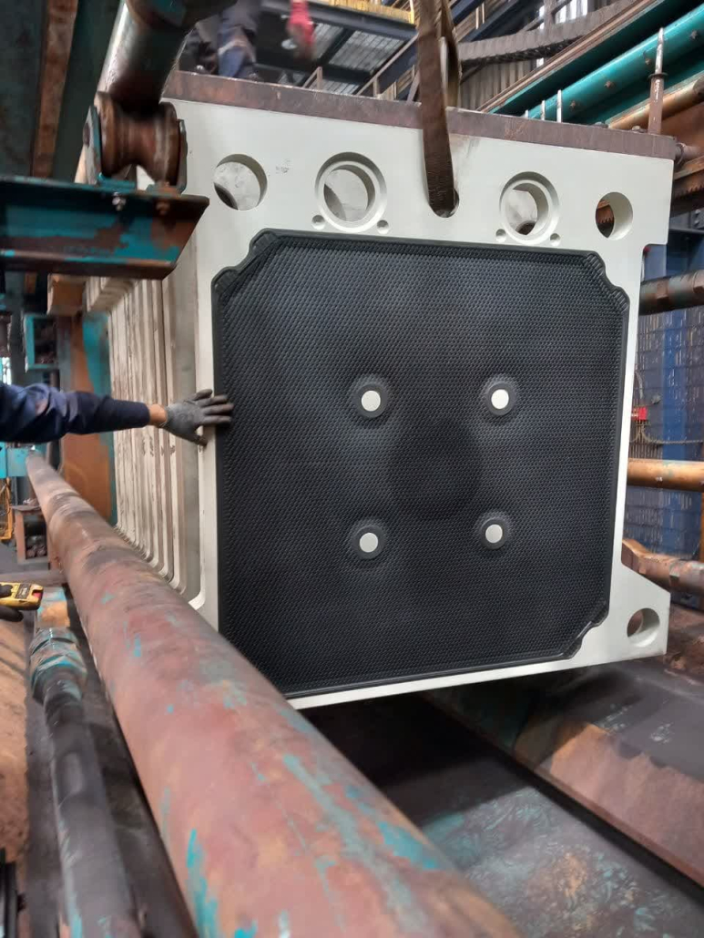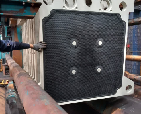 در انجام این پروژه تیم فنی شرکت فیلترتجهیز فروزان با ایجاد تغییراتی در پایپینگ فیلترپرس و رفع معایب و تعمیر بخشی از صفحات و تعویض پارچه های آنها موفق به راه اندازی دستگاه شده و کیک فیلتر با رطوبت تقریبی زیر ۹ درصد حاصل شد.